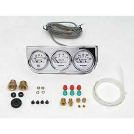 Autometer White Face Autogage Series - Mechanical Gauges Includes Oil Pressure(0-100 PSI), Coolant Temperature (130-280*F), & Voltmeter(10-16 V) Attaches To Bottom Of Dash - Includes 6 ft. Of Mounting Tubing This Chevrolet replacement gauge panel has been manufactured to meet or exceed factory specifications and performance. You will find the fit and function will work perfectly for your Chevy.