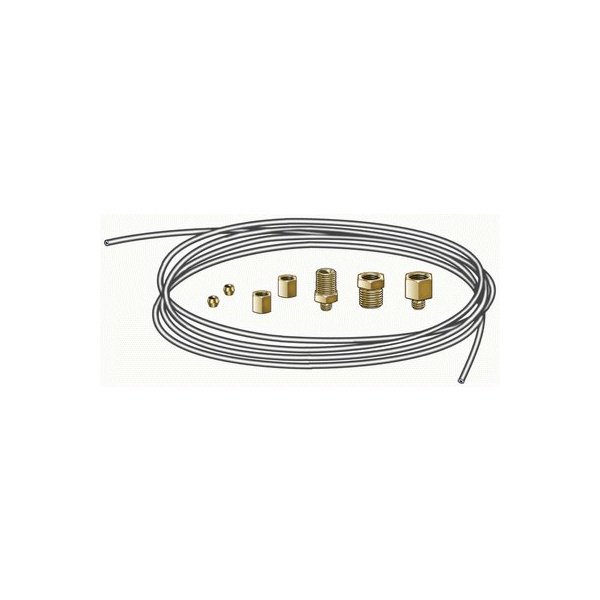 The kit includes instructions, 6 feet of 1/8" tubing, 2 nuts, 2 ferrules, and an adapter fitting. This kit is included when you buy the A6602 gauge. The tubing is copper, NOT plastic. USA made.