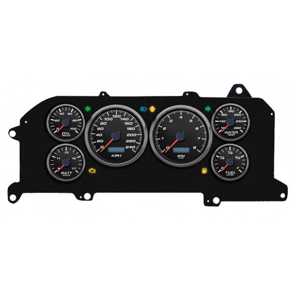 Mustang - New Vintage USA Performance ll Series Kit - 6 Gauge Package, Black Dial - 1987-1993 -  Programmable Speedometer KPH