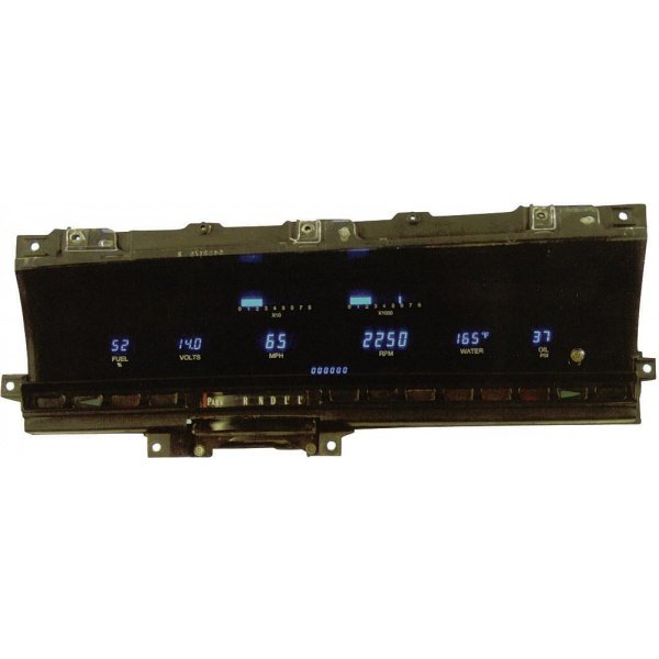 Dakota Digital Series III instrument systems offer the latest technologies and features for your custom vehicle. High brightness vacuum fluorescent displays provide a lifetime of trouble free use while offering increased accuracy and features! Full 6 Gauge Instrument System fits into OEM bezel for 1970- 72 SS El Camino's. You will need to send in OEM instrumentation cluster for the factory to complete the custom installation. Displays included with this instrument system: Speedometer (0-255 MPH or KPH), Tachometer, Oil Pressure, Water Temp, Voltmeter, Fuel Level. Also shown is: Odometer, Trip Odometer, Resettable Service Odometer and Hourmeter. Several performance calculations include: 0-60 MPH (0-100 KPH) timer, 1/4 mile timer, 1/4 mile speed display, High Speed recall and High RPM recall. Various Indicators can also be displayed such as: Turn Signals, High Beam, Check Engine, Parking Brake, Cruise Control, (when equipped) Digital dash systems also include a Demonstration Mode which will cycle the instrument readouts while the vehicle is standing still. This is especially popular while the vehicle is on display at a show, event or simply displaying the instrument system. Full Metric conversions will cycle between MPH or KPH with the press of a button. If full (Celsius & KPH) metric instrument systems are required, please specify upon ordering. Necessary sensors included for oil pressure (1/8 NPT), Water Temp (1/8 with bushings for 1/4, 3/8, 1/2 NPT) and speedometer pulse generator. Fuel level gauge can read either OEM sensor, or any aftermarket style currently available. A universal fuel level sender. Fully programmable speedometer for various tire sizes, rear-end gearing combinations, etc. Built-in dimmer will reduce the display intensity as headlights/ parking lights are activated. Fully adjustable warning points alert the user of potential vehicle problems. systems are normally shipped from the factory with 0 miles on the odometer. If you would like mileage added to the odometer, this can be done at the factory for a charge of $30. Covered by a Limited Lifetime Warranty