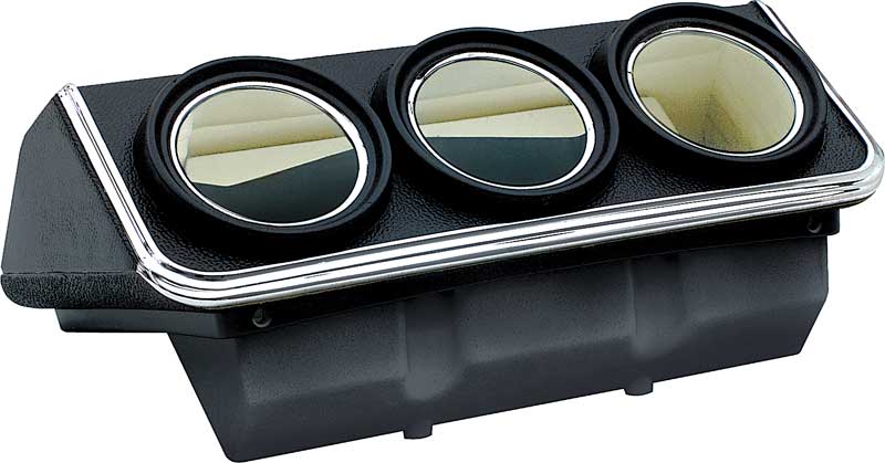 This gauge housing may be added to Camaro models not originally equipped with console gauges by modifying the console. If you would like to add console gauges to a Camaro not originally equipped with them, the console gauge housing is also available fully assembled with gauges already installed.