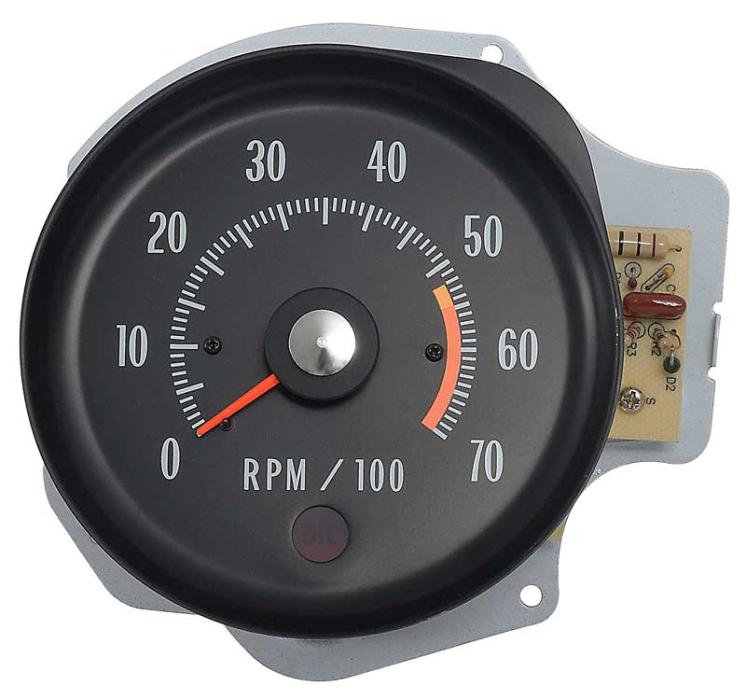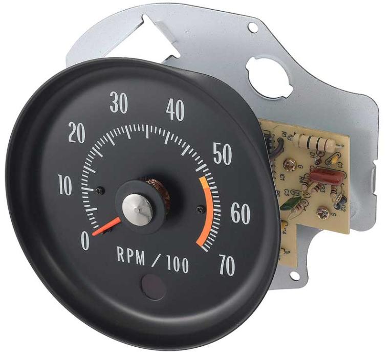 OER® reproduction of the original tachometer designed for use with 1972-72 Chevrolet Chevelle, El Camino, Monte Carlo, and various truck models. Each tachometer is manufactured to factory specifications featuring a stamped steel backing replicating the original GM design. The tach face features correct silk-screened numerals in the correct font and colors matching the GM design. Will fit and install as original. This tachometer features a 7000 RPM range with 5000 RPM redline.