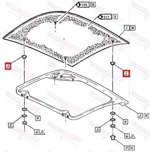 Corvette T-Top Roof Panel Stud Insulator Bushing, 1978-1982: