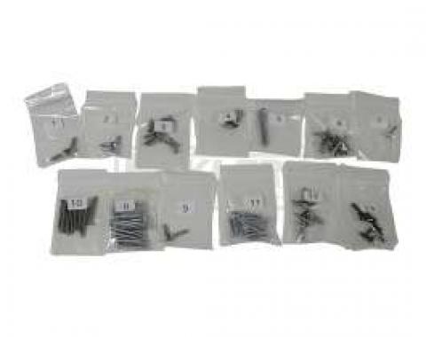 Get rid of those mismatched, rusted & stripped screws. A cover sheet is provided to show the correct location for each bagged and tagged screw. Make your classic Ford pickup's interior hardware brand new with our trim screw…