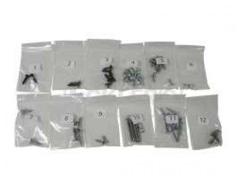 Complete kit of interior screws used on your classic. Brand new sets include all the screws used in the interior of your vehicle to include sill plates, interiot trim moldings, kick panels, seat hinge brackets. Our kits were made to save…