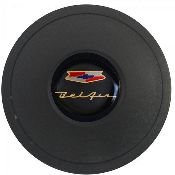 Not everyone wants a factory stock interior in their Bel Air, 150, 210, Nomad or wagon. And our Black Leather, Black Ash and Walnut wood look & feel steering wheels will need a center horn cap that looks just as good as the steering wheel with your choice of logos like the Chevy Bowtie.