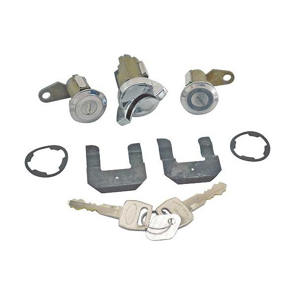 We have a complete set of door lock cylinders with keys and ignition cylinder offered as a complete set. These are correct replacement units with correct original fit and appearance. Includes correct keys and are complete and ready to install. For cars made after 5/15/1973 only. Comes with arm on end for rod to fit into.