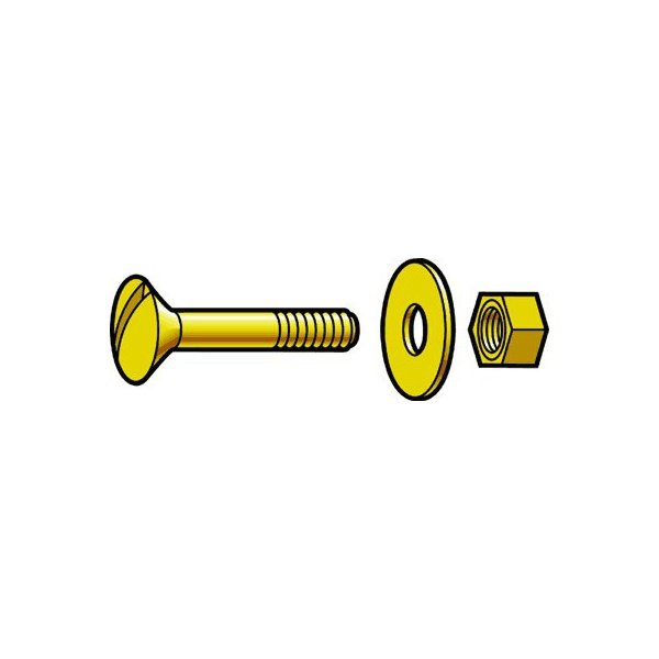 This steering column mounting set includes a brass screw, nut and washer. The 5/16" x 1-1/2"-18 oval head screw is used to fasten the steering column to the firewall.