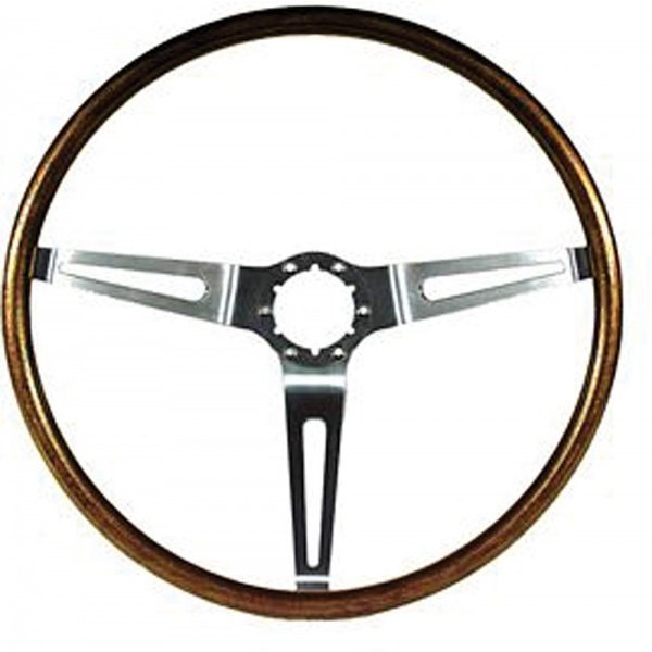 Reproduction Of Original Bare 3 Spoke Wheel Simulated Woodgrain Textured Plastic Brushed Stainless Spokes Officially Licensed GM Restoration Part This El Camino reproduction steering wheel has been manufactured to original factory specifications using today's modern manufacturing techniques. You will find the fit, finish and function will work superbly for your restoration. In addition, using a reproduction steering wheel from the El Camino Store will add authenticity and value to your vehicle.