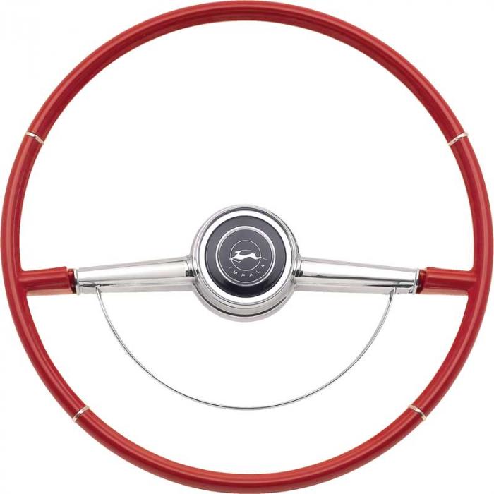 1965-66 Impala Steering Wheel with Chrome Horn Ring, Red: