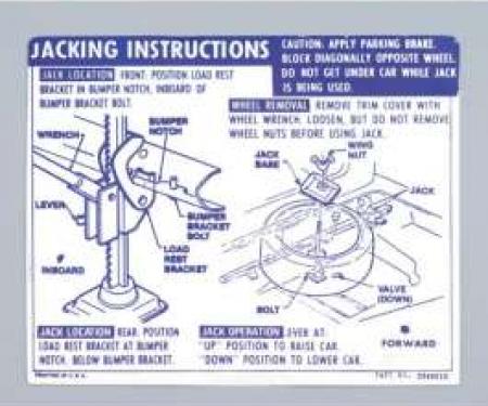 Reproduction Of Original This Chevelle reproduction jacking instruction decal has been manufactured to original factory specifications using today's modern manufacturing techniques. You will find the fit, finish and function will work superbly for your restoration.
