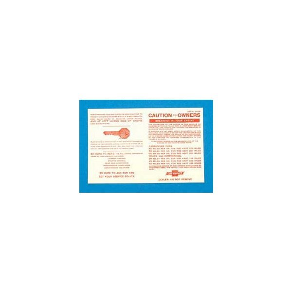 Chevy Break-In Instructions Sheet, 1955-1957:
