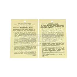 Reproduction Of Original Correct Instruction Tag As Found When Your Car Was New Contains helpful Operating Instructions This El Camino reproduction cruise control instruction tag has been manufactured to original factory specifications using today's modern manufacturing techniques. You will find the fit, finish and function will work superbly for your restoration. In addition, using a reproduction cruise control instruction tag from the El Camino Store will add authenticity and value to your vehicle.