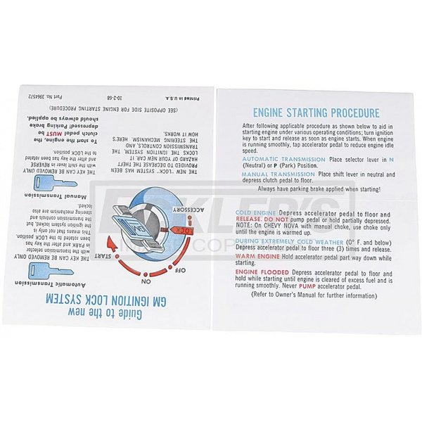 Reproduction Of Original This El Camino reproduction starting instruction sleeve has been manufactured to original factory specifications using today's modern manufacturing techniques. You will find the fit, finish and function will work superbly for your restoration. In addition, using a reproduction starting instruction sleeve from the El Camino Store will add authenticity and value to your vehicle.