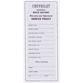Full Size Chevy Delco Battery Guarantee, 1958-1964