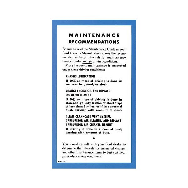 Owner's Manual Maintenance Sheet - Ford: