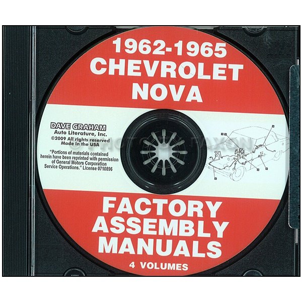 This officially licensed by GM CD-ROM offers accurate PDF reproductions of the 1962, 1963, 1964, 1965, 1966, 1967, 1968, 1969, 1970, 1971 and 1972 Chevy II and Nova Factory Assembly Manuals. Each CD-ROM includes accurate illustrations and exploded views of virtually every mechanical part with part group numbers. This CD-ROM guides your disassembly or reassembly of parts and is ideal for identifying incorrect or missing parts. Production and regular production options (RPOs) are included: mounting, frame, front & rear suspension, brakes, engine, transmission, fuel & exhaust, and steering. Also included are comprehensive illustrations for body wheels & tires, sheet metal, electrical, radiator & grille, bumpers, accessories, options, wiring diagrams plus all necessary torque specifications, and handwritten revision records. Each CD covers all Chevy II and Novas in the year spans mentioned.