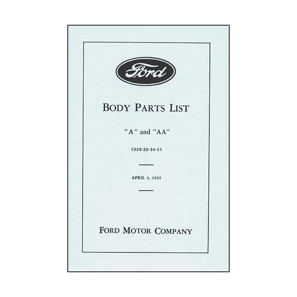 A complete list including passenger, commercial and dump truck information. It also has listings for body glass and photographs of each Model A body style.