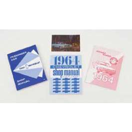 Reproductions Of Original Most Important Literature For 1964 Owner Shop Manual Is For 1961...1964 Supplement Is Included You can save money by ordering this set. This Literature Package includes the most important manuals you will need to properly rebuild and restore your Late Great Chevy. The set includes: Shop Manuals, Assembly Manual & Owner's Manual. The Shop Manual is a reprint of the original manual that dealer mechanics used to service and repair these cars when they were new. Full of disassembly instructions, rebuild how-to and reassembly techniques. Also included are hundreds of diagrams, charts, specs and photos. The Factory Assembly Manual is the manual that Chevrolet used to assemble new cars after the body was delivered by Fisher Body. The assembly manual contains thousands of diagrams, exploded views and part numbers. This manual is very useful when trying to identify & install items or when trying to determine the proper orientation of each component. The Factory Assembly Manual covers the entire vehicle; including the optional factory installed equipment. The Owner's Manual is exact reprint of original that came with every new car. The owner's manual is full of all the handy how to operate your new car information; as well as important original facts and original warranty information.