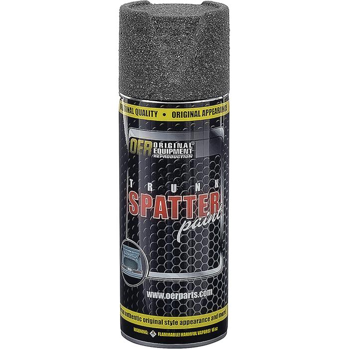Black and gray spatter paint for use with many '60s and 70's vehicles. This spatter paint is used to paint cover the trunk floor of the vehicle. Each can contain the correct OEM style black and aqua textured spatter paint. After many years, your trunk area may need attention due to water damage or other factors. If you are replacing your trunk pan then spraying the trunk is a must, even if you're installing a trunk mat.