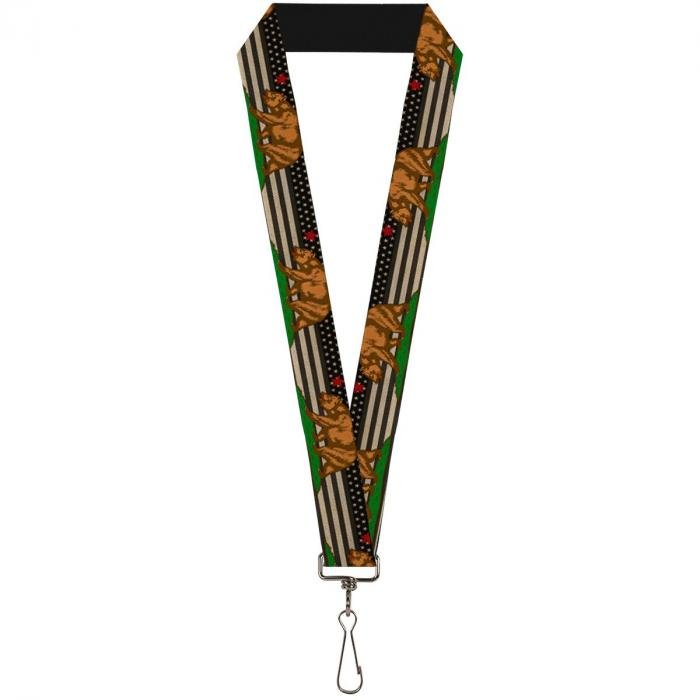 Buckle-Down Lanyard - Cali Bear/Star/US Flag Stretch Black/White/Red: