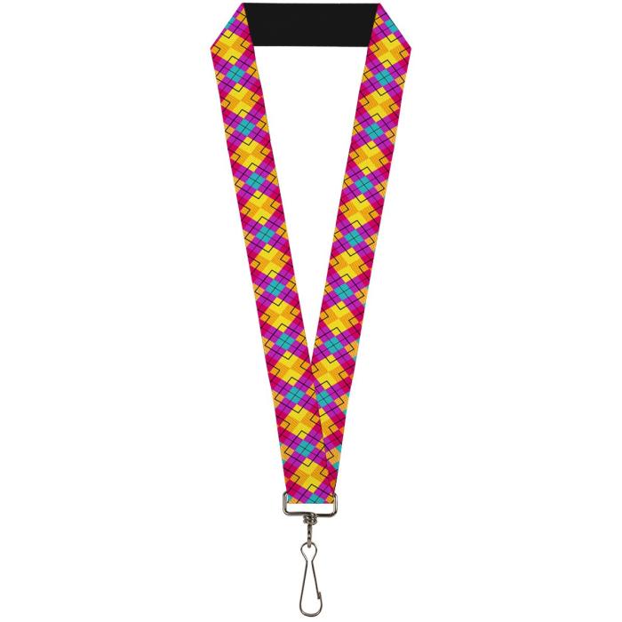 Buckle-Down Lanyard - Diamond Plaid Orange/Yellow/Blue/Purple/Fuchsia