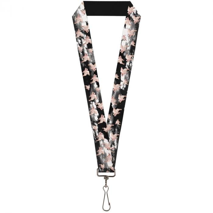 Buckle-Down Lanyard - Flying Pigs Black/White/Pink: