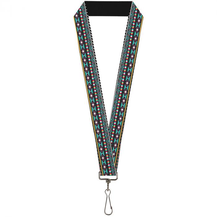 Buckle-Down Lanyard - Geometric5 Gray/Teal/White/Pink/Yellow: