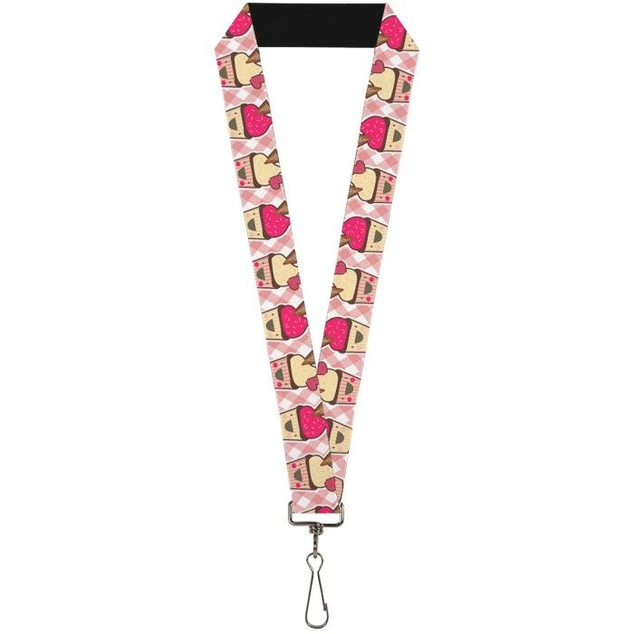 Buckle-Down Lanyard - Happy Cupcakes Buffalo Plaid White/Pink