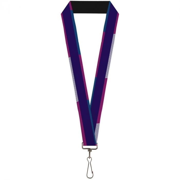 Buckle-Down Lanyard - Hash Mark Stripe Navy/Turquoise/Fuchsia/White