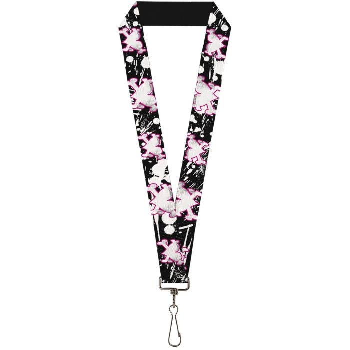 Buckle-Down Lanyard - Heart & Cross Bones w/Splatter Black/White: