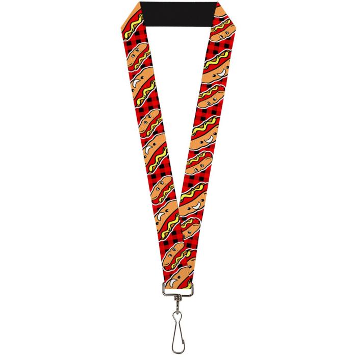 Buckle-Down Lanyard - Hot Dogs/Buffalo Plaid Black/Red: