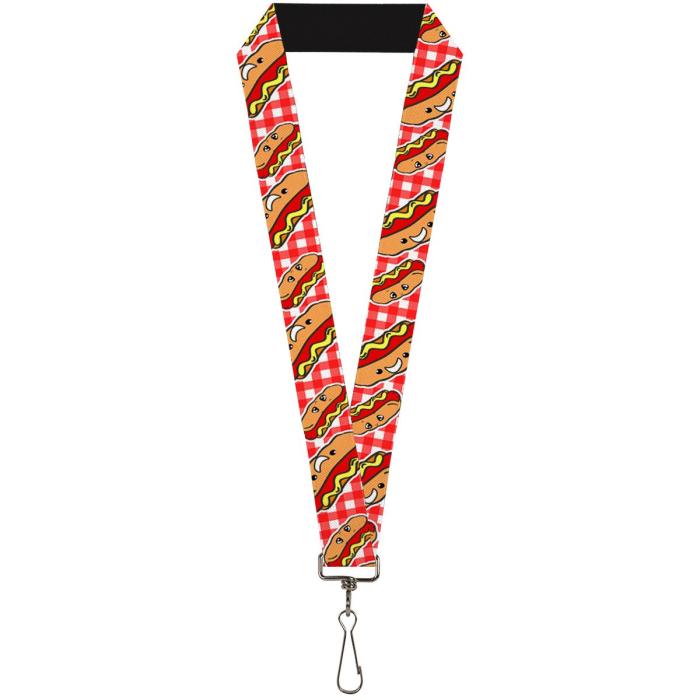 Buckle-Down Lanyard - Hot Dogs Buffalo Plaid White/Red