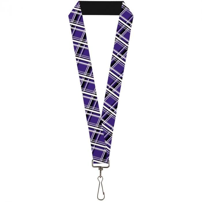 Buckle-Down Lanyard - Houndstooth Gray/Purple/White: