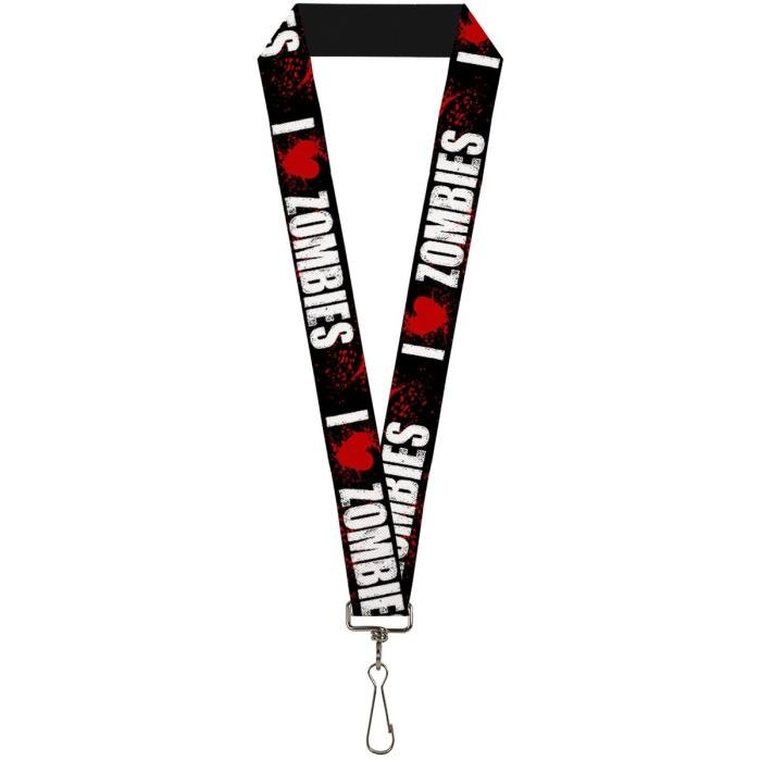 Buckle-Down Lanyard - I "HEART" ZOMBIES Black/White/Red Splatter: