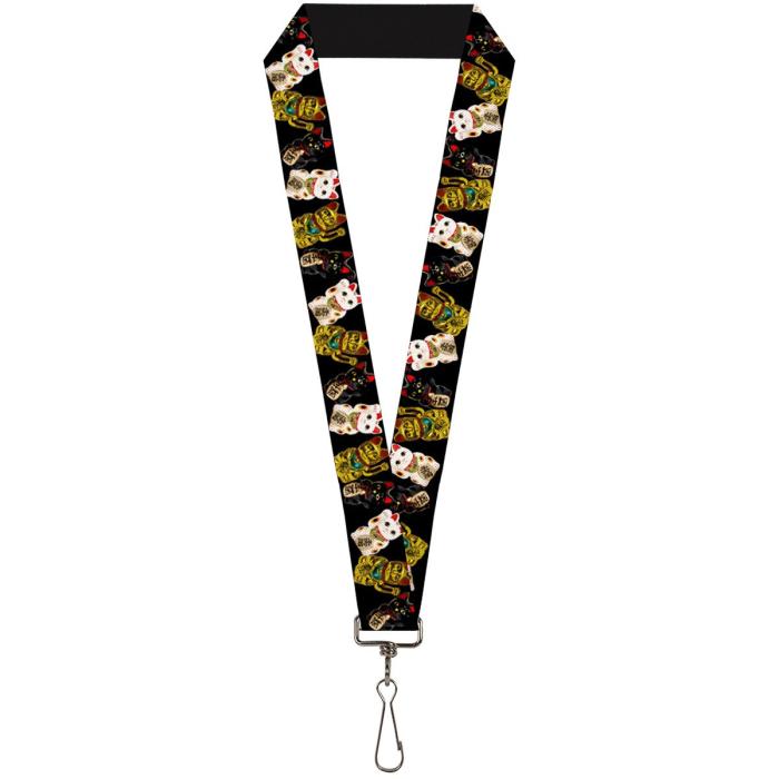 Buckle-Down Lanyard - Maneki Neko Lucky Cats Gold/Black/White