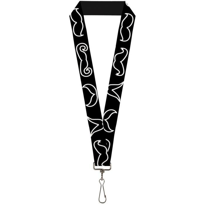 Buckle-Down Lanyard - Mustache Outlines Black/White