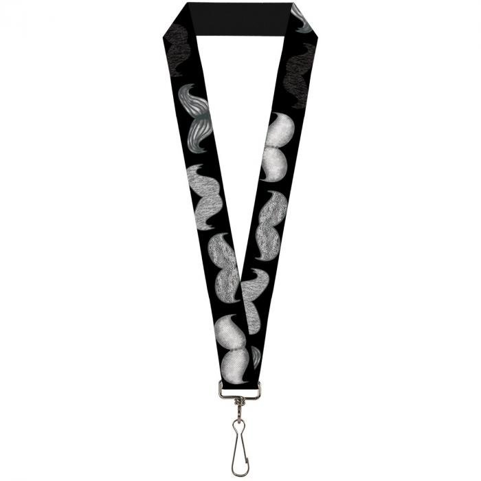 Buckle-Down Lanyard - Mustache Sketch Black/White: