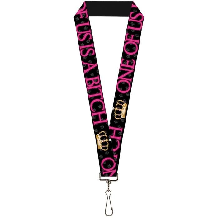Buckle-Down Lanyard - ONE OF US IS A BITCH Crown/Paws Black/Gray/Pink: