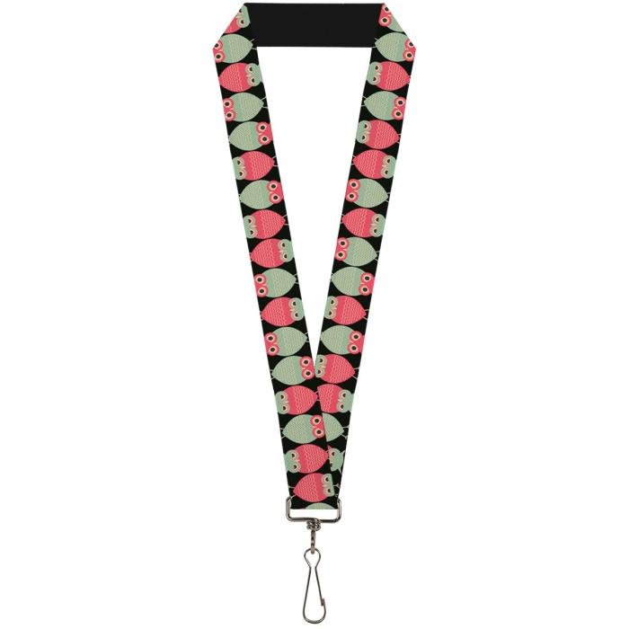 Buckle-Down Lanyard - Owls Flip Black/Mauve/Sage: