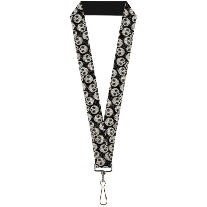 Buckle-Down Lanyard - Panda Bear Sugar Skull Scattered Black/Cream: