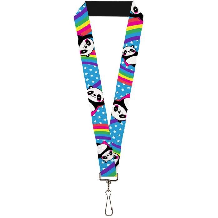 Buckle-Down Lanyard - Pandas & Rainbows w/Stars: