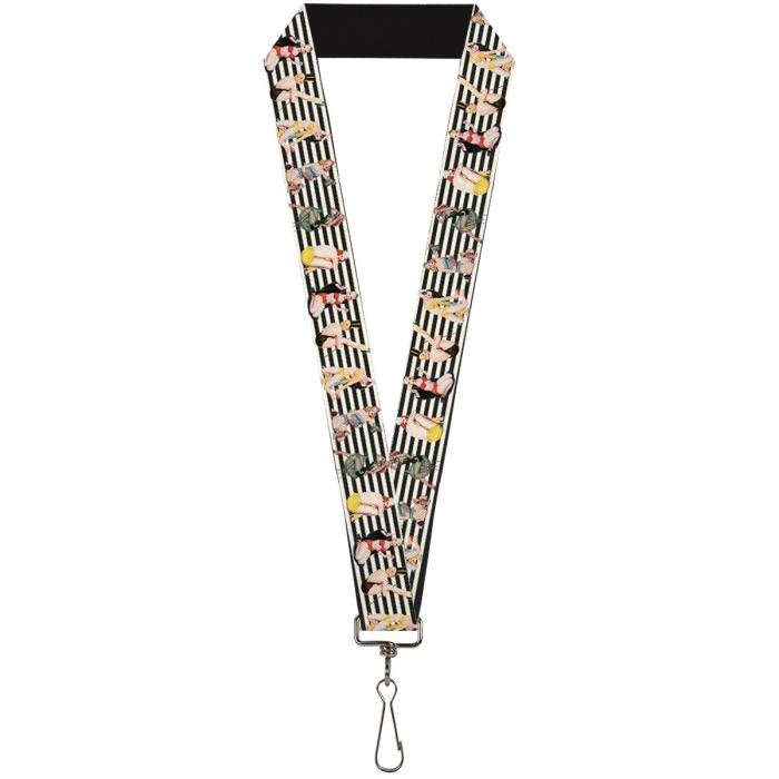Buckle-Down Lanyard - Pin Up Girl Poses Stripe Black/White: