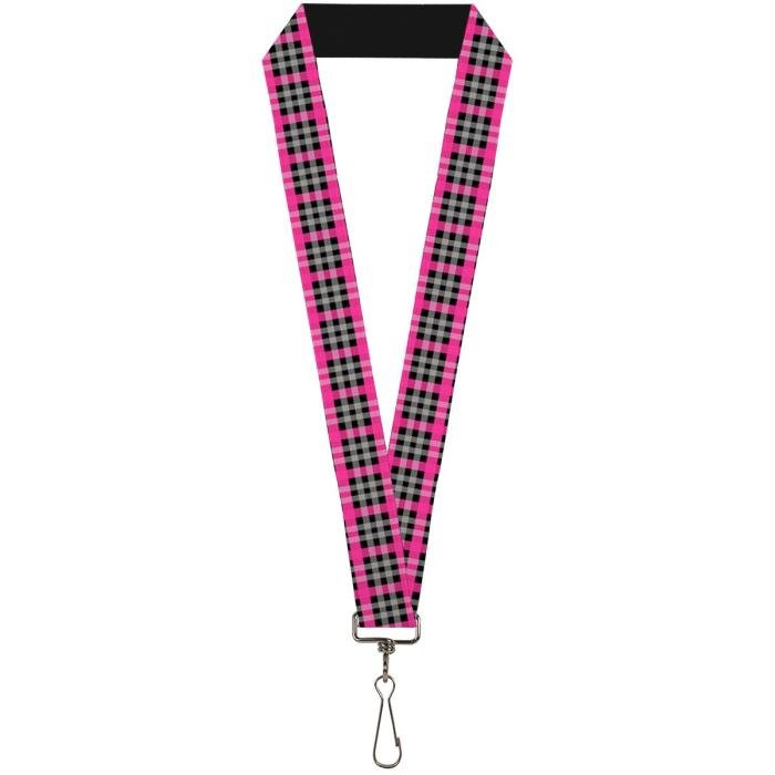 Buckle-Down Lanyard - Plaid Black/Gray/Fuchsia
