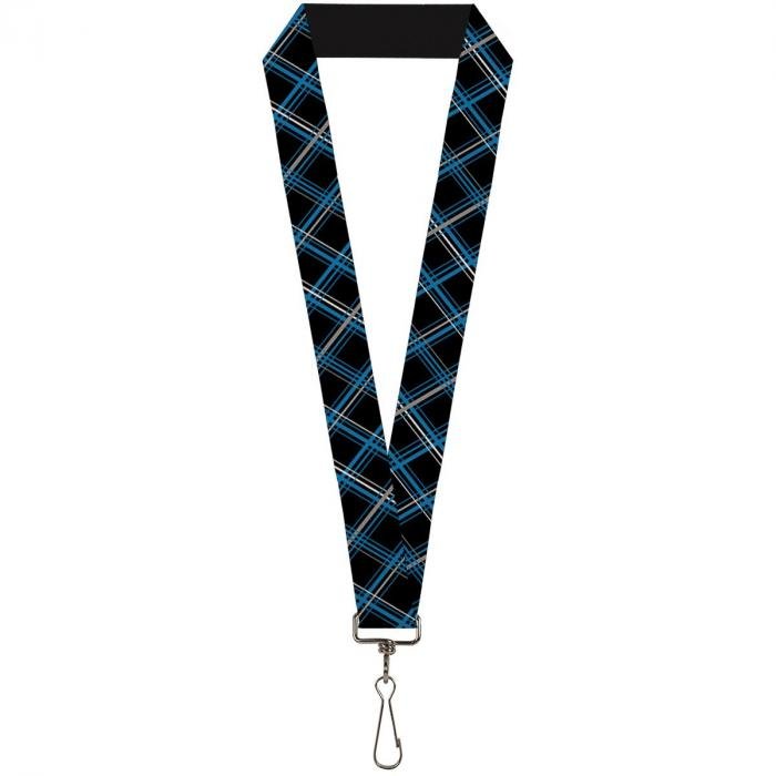Buckle-Down Lanyard - Plaid Black/Turquoise/Gray