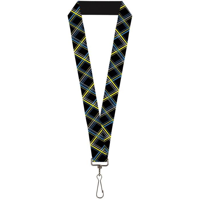 Buckle-Down Lanyard - Plaid Black/Yellow/Turquoise/Gray