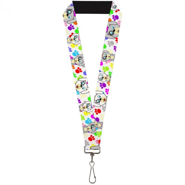 Buckle-Down Lanyard - Puppies w/Paw Prints White/Multi Color