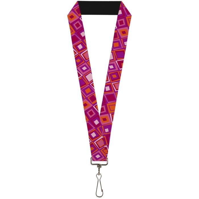 Buckle-Down Lanyard - Skewed Squares Stacked Purple/Orange/Pinks
