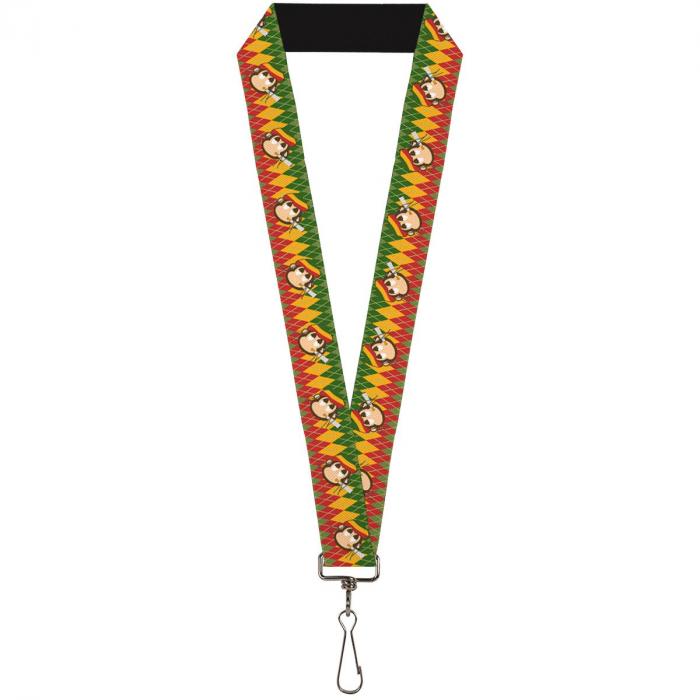 Buckle-Down Lanyard - Smoking Monkey Repeat Argyle Rasta: