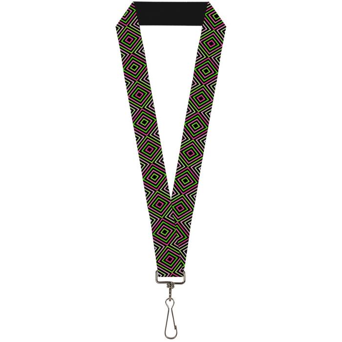 Buckle-Down Lanyard - Square Lines Black/Greens/Pinks: